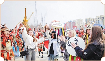 俄羅斯游客參加佳木斯市第二屆“喊江節(jié)”主會場活動。