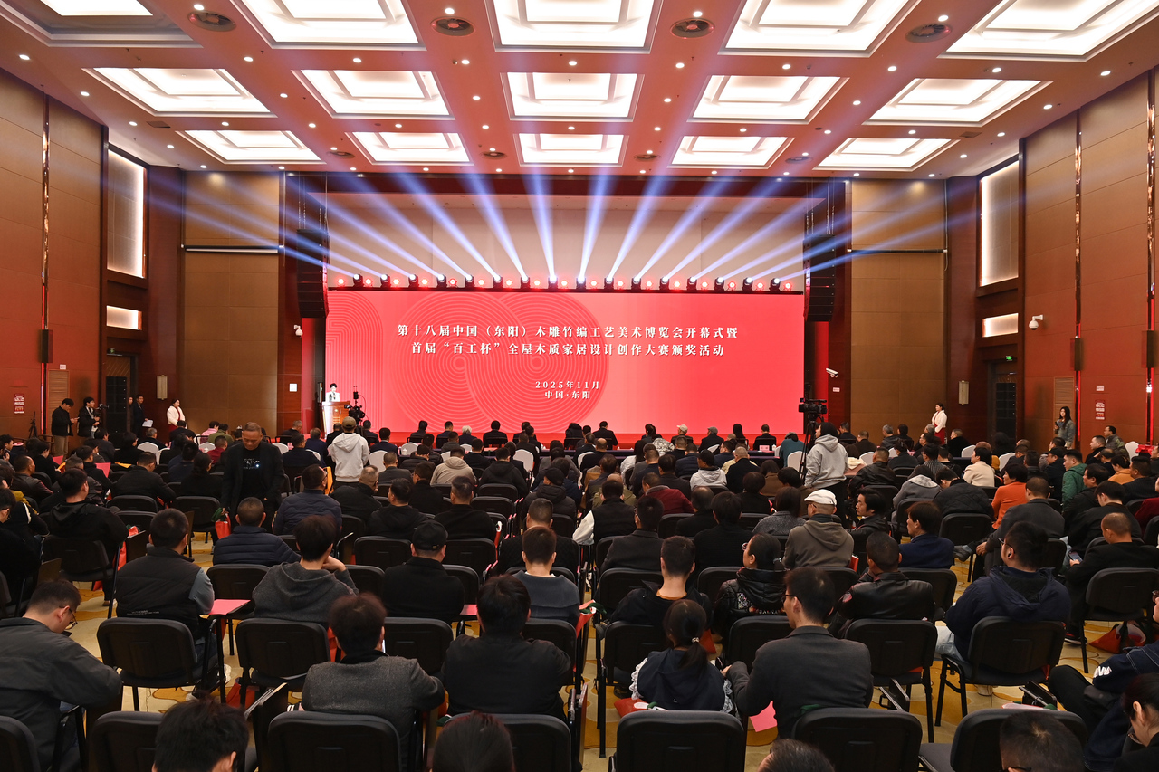 匠心傳經(jīng)典,新質(zhì)向未來。11月22日上午,第十八屆中國(東陽)木雕竹編工藝美術(shù)博覽會開幕式暨首屆“百工杯”全屋木質(zhì)家居設(shè)計(jì)創(chuàng)作大賽頒獎(jiǎng)活動(dòng)在中國木雕博物館舉行。