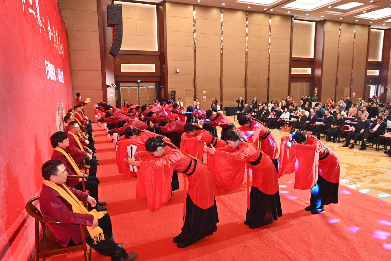 傳承技藝匠心,賡續(xù)文化血脈。開幕式上還舉行了浙江廣廈大學(xué)工藝美術(shù)精英班開班和市職教中心木雕家居專業(yè)學(xué)生向行業(yè)大師拜師儀式。