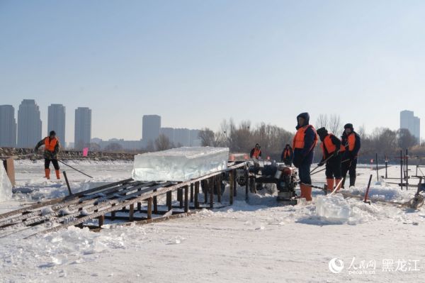 人民網(wǎng)哈爾濱12月10日電 第六屆哈爾濱采冰節(jié)的成功舉辦,拉開了松花江采冰的大幕,第二十七屆哈爾濱冰雪大世界采冰工作全面展開,新開采出的優(yōu)質(zhì)冰料源源不斷地送達(dá)園區(qū)。截至今日,園區(qū)建設(shè)已完成70%。